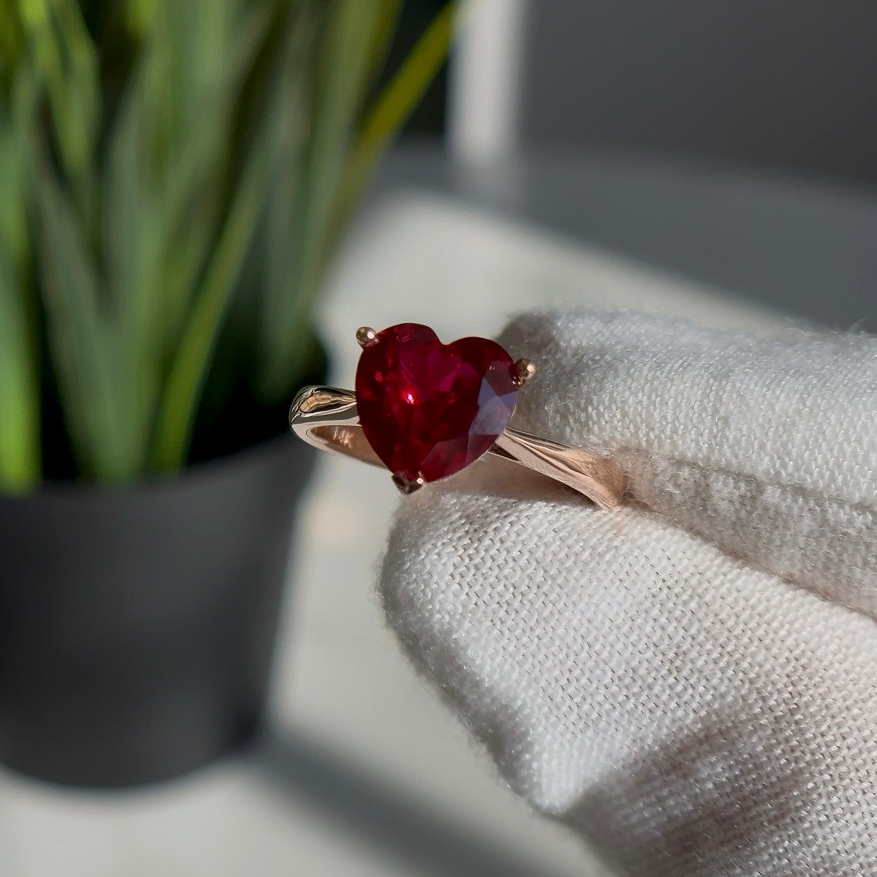 2.50ct Heart-Cut Red Ruby Ring in 14K Yellow or Rose Gold, “The Heart”