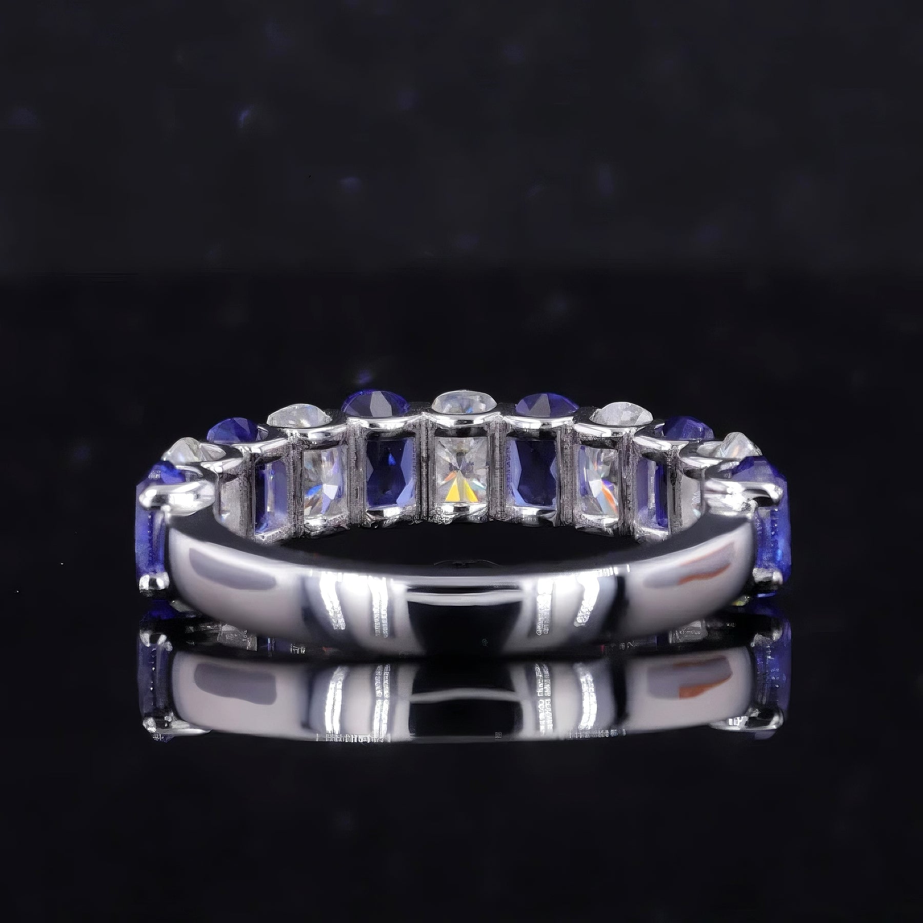3.35ctw Gemstones – Vivid blue sapphires and brilliant white diamonds in a striking alternating pattern.