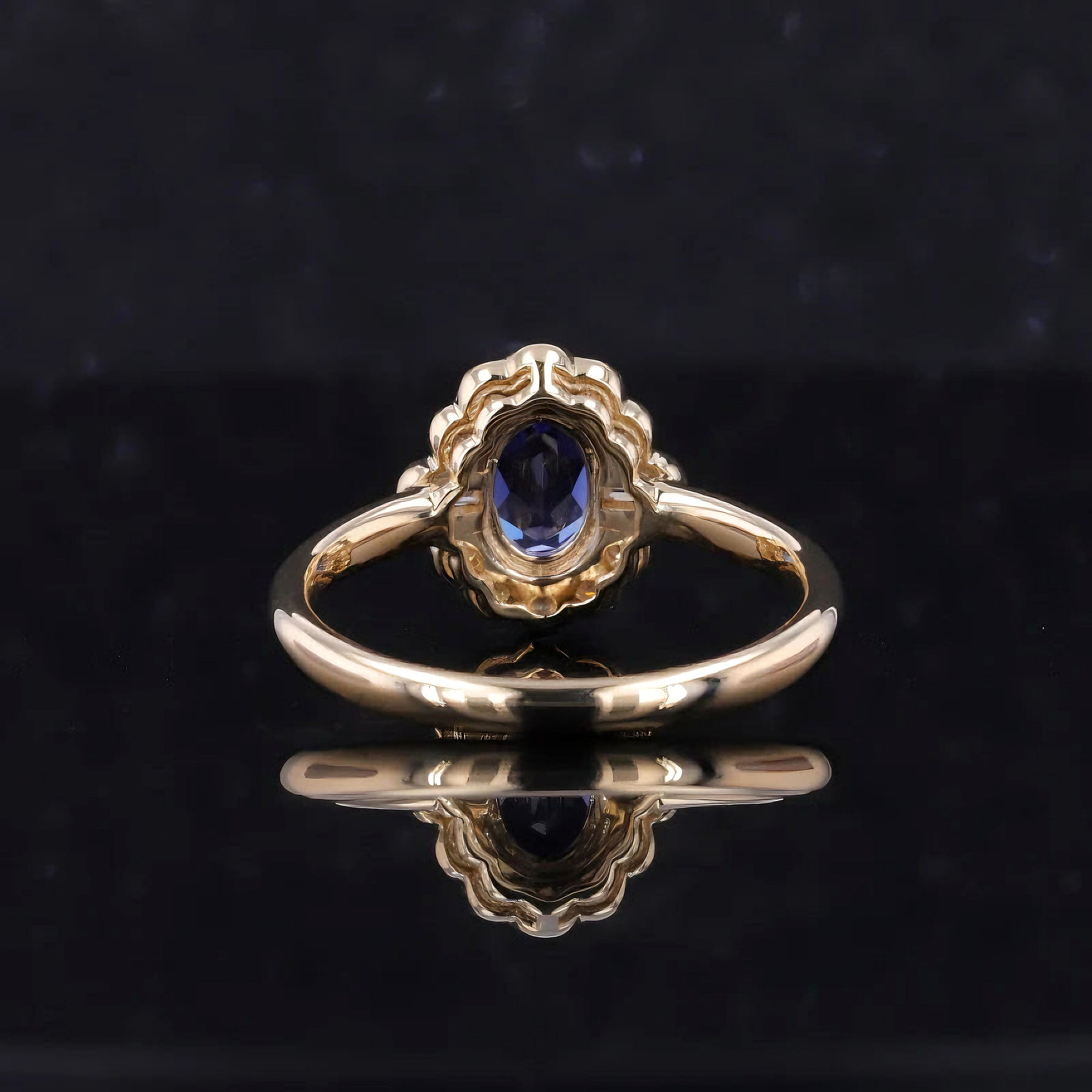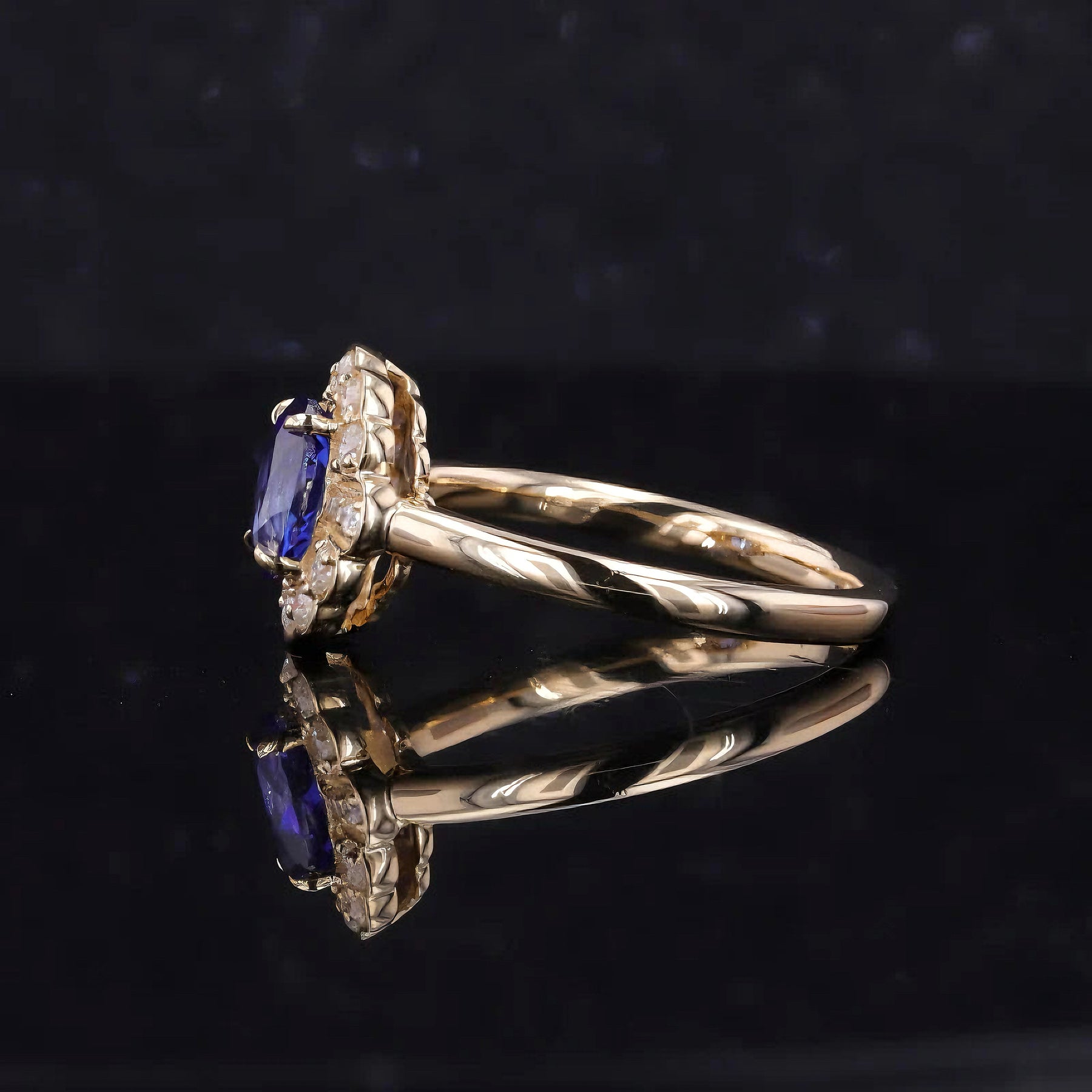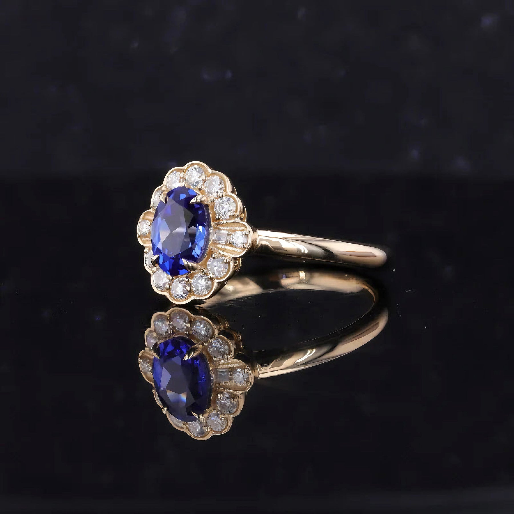 1.00ct Oval-Cut Blue Sapphire Diamond Halo Ring in 14K Yellow Gold