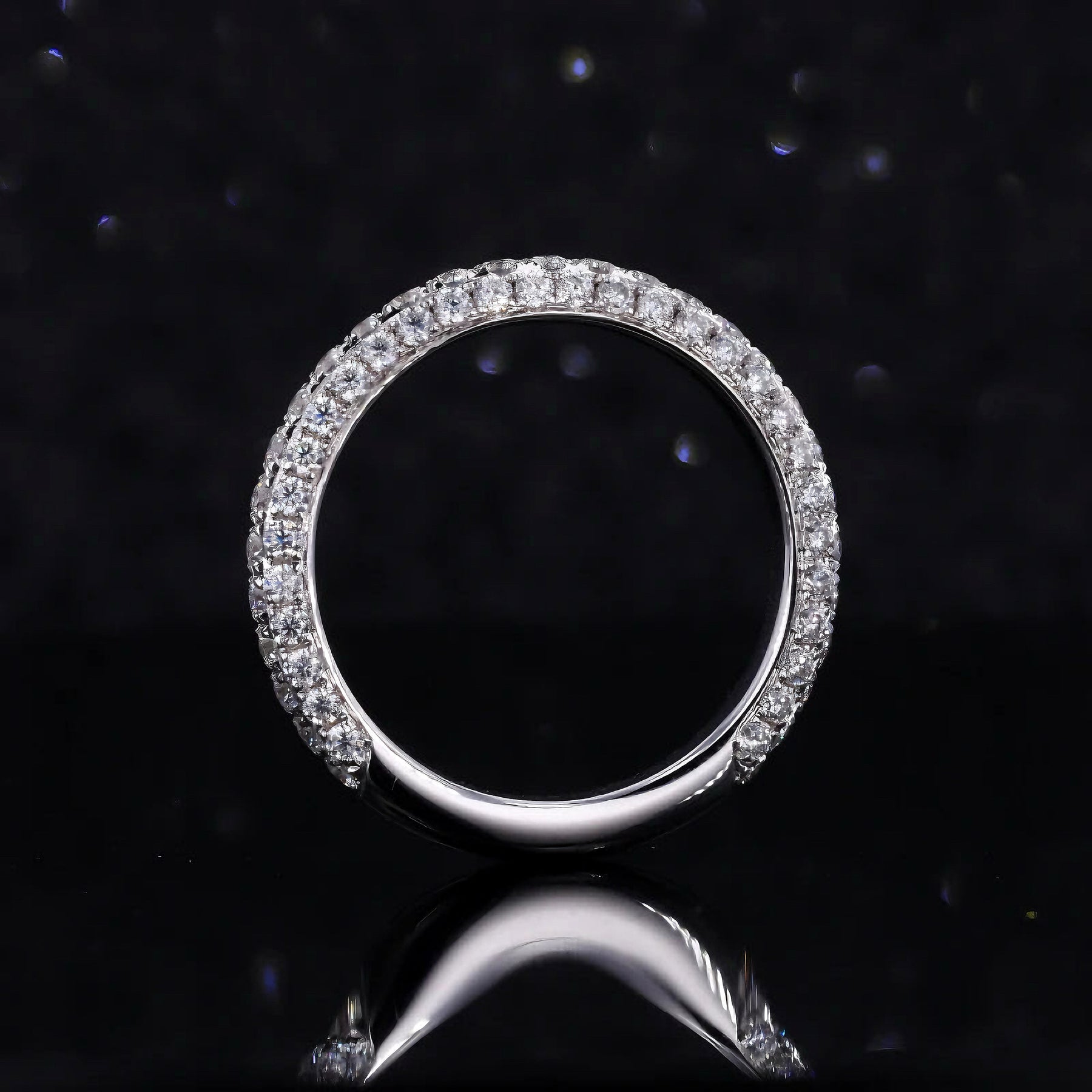 ¾ Eternity Design – Diamonds cover most of the band, balancing comfort with maximum sparkle.