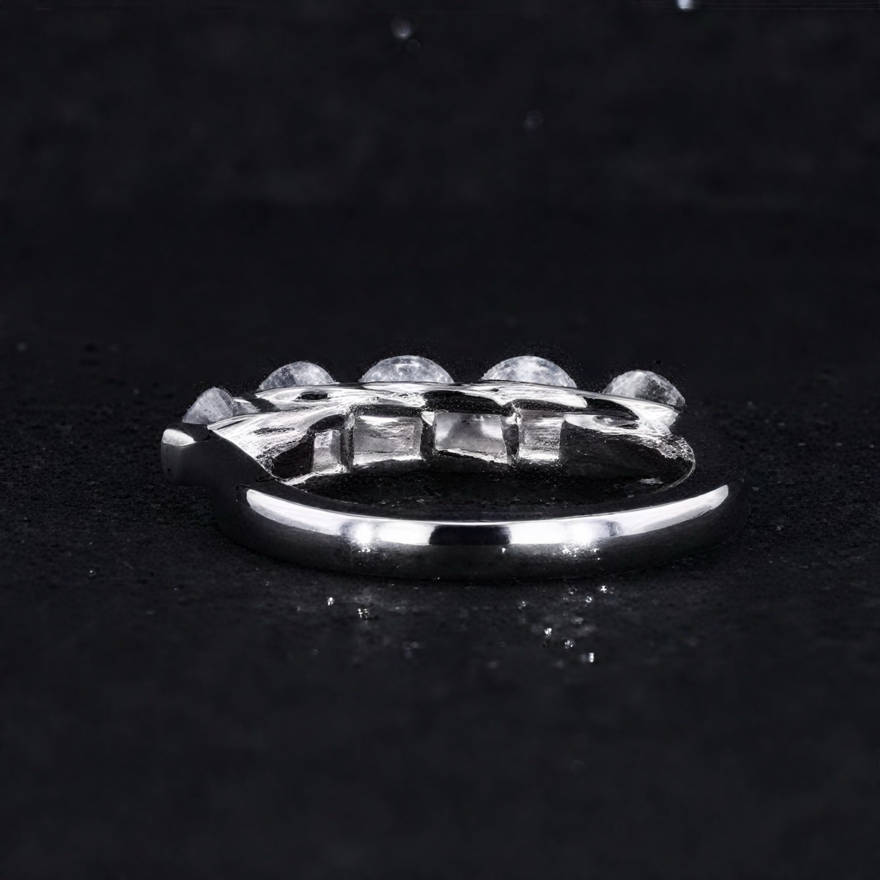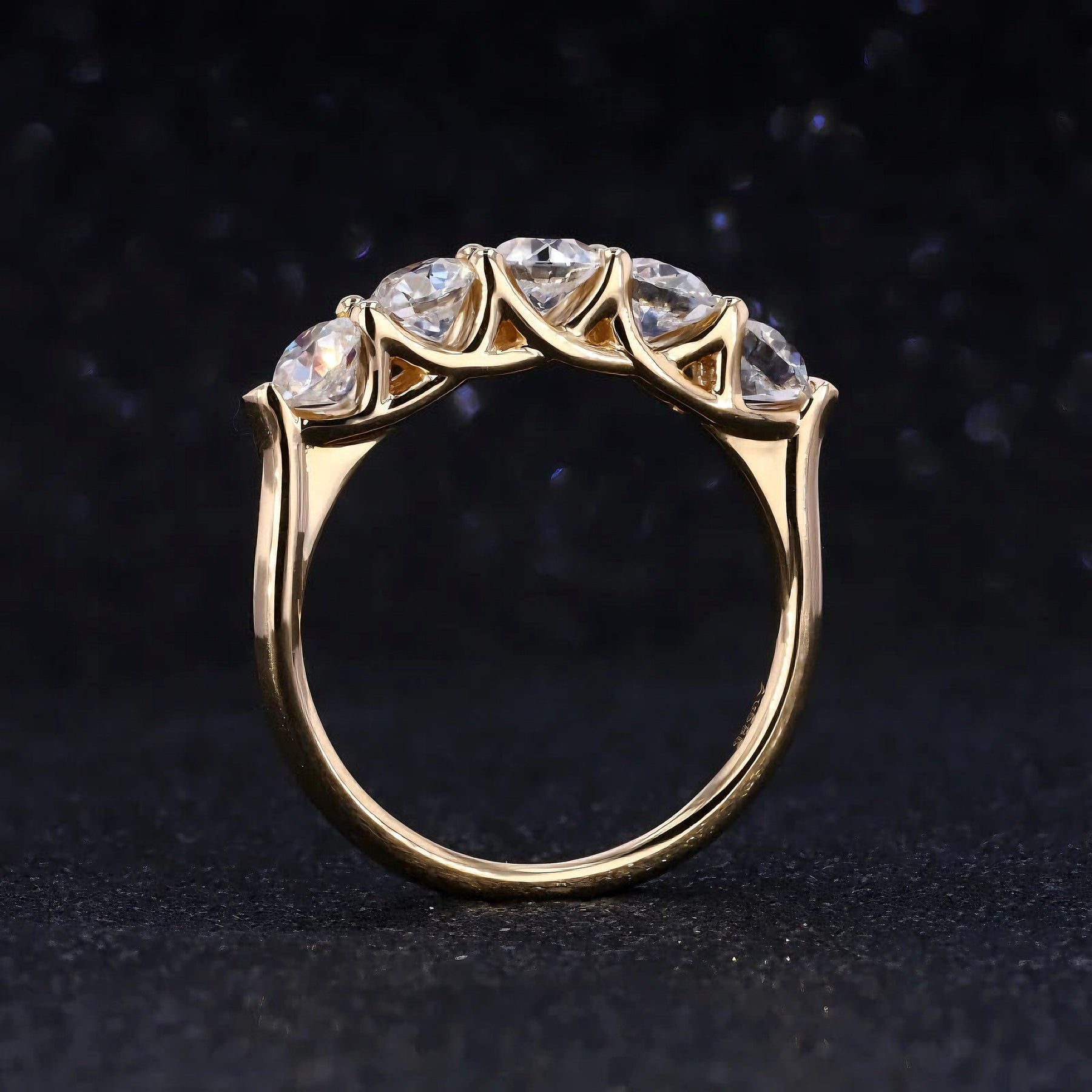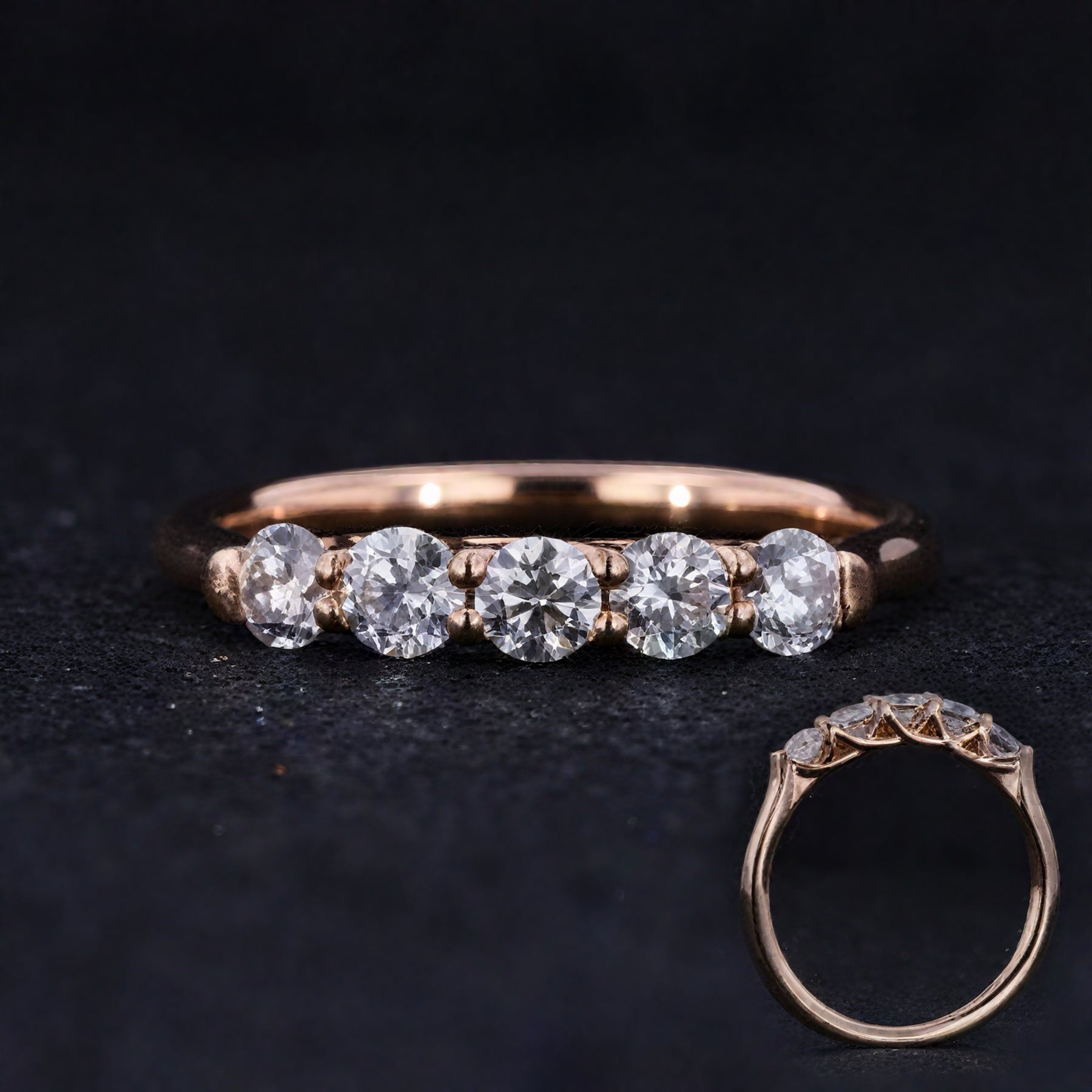 0.75ctw Diamonds – Five brilliant round-cut diamonds lined across the band for timeless sparkle.