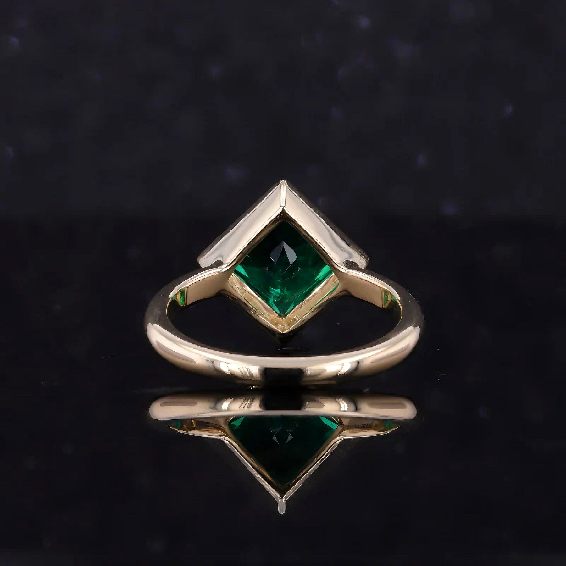 A refined and timeless piece, this Princess Cut Zambian Emerald Ring blends bold elegance with modern simplicity. Crafted with 14K solid yellow gold, it features a striking 1.20ct lab-grown Zambian emerald in a sleek bezel setting, offering a sophisticated and secure design.