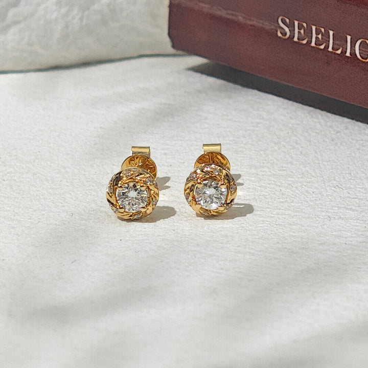 Elevate your style with these stunning diamond earrings, featuring a brilliant design that combines elegance and sparkle. Crafted in 14K solid white or yellow gold, these earrings are adorned with a centerpiece diamond surrounded by smaller diamonds in a breathtaking pattern, making them truly exceptional.