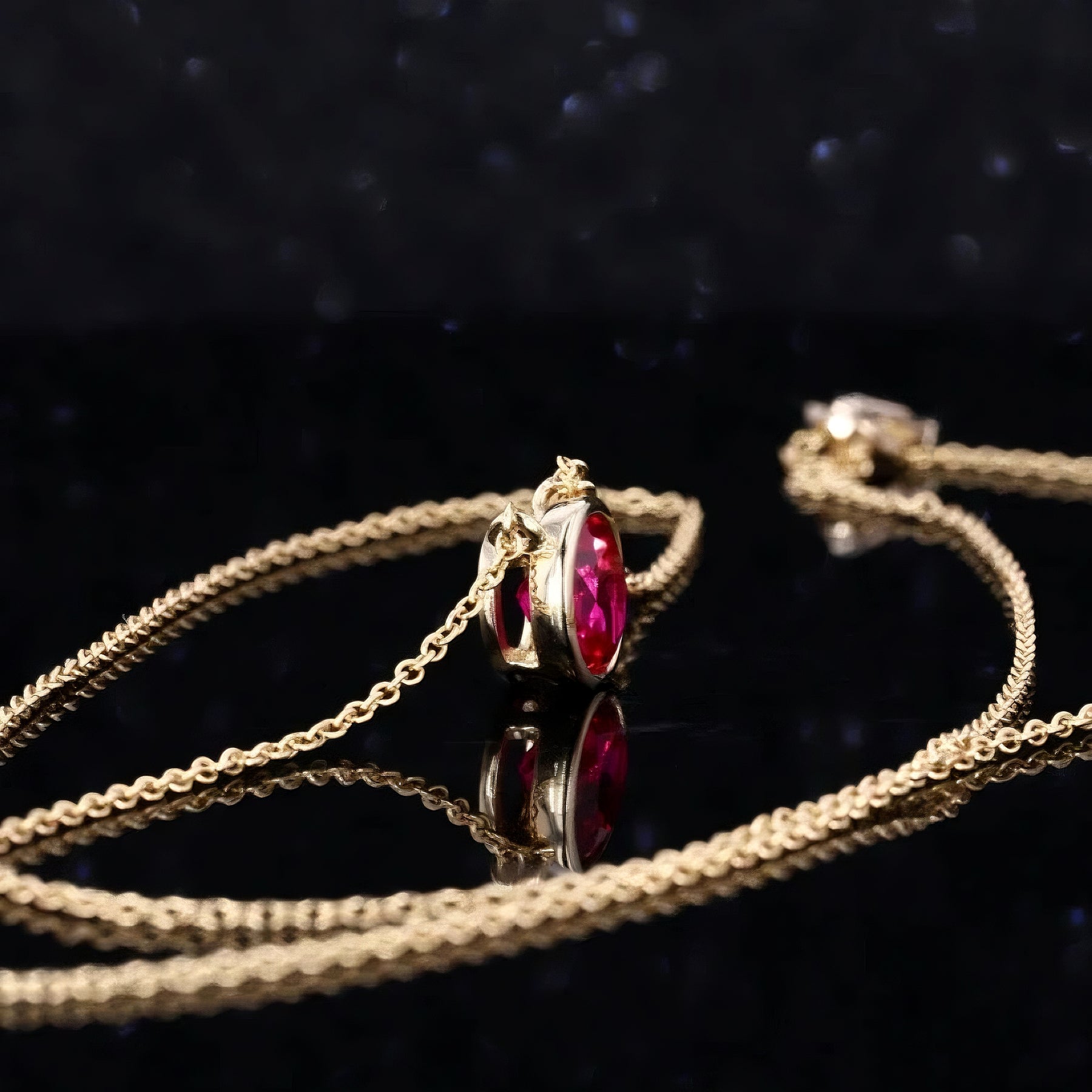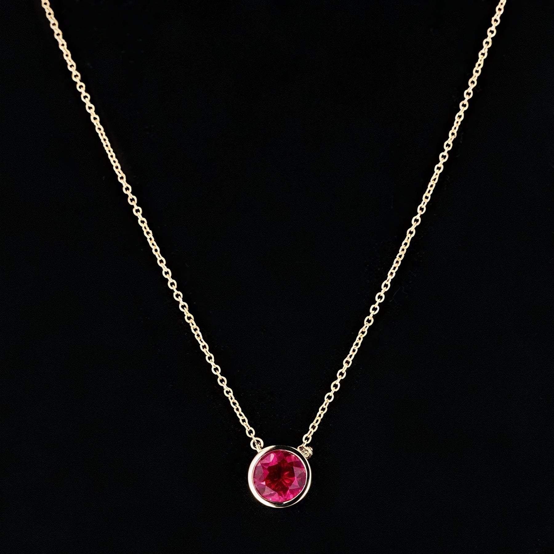 Round Cut Bezel Set 6.5mm Ruby Pendant Necklace in 10K Solid Yellow Gold