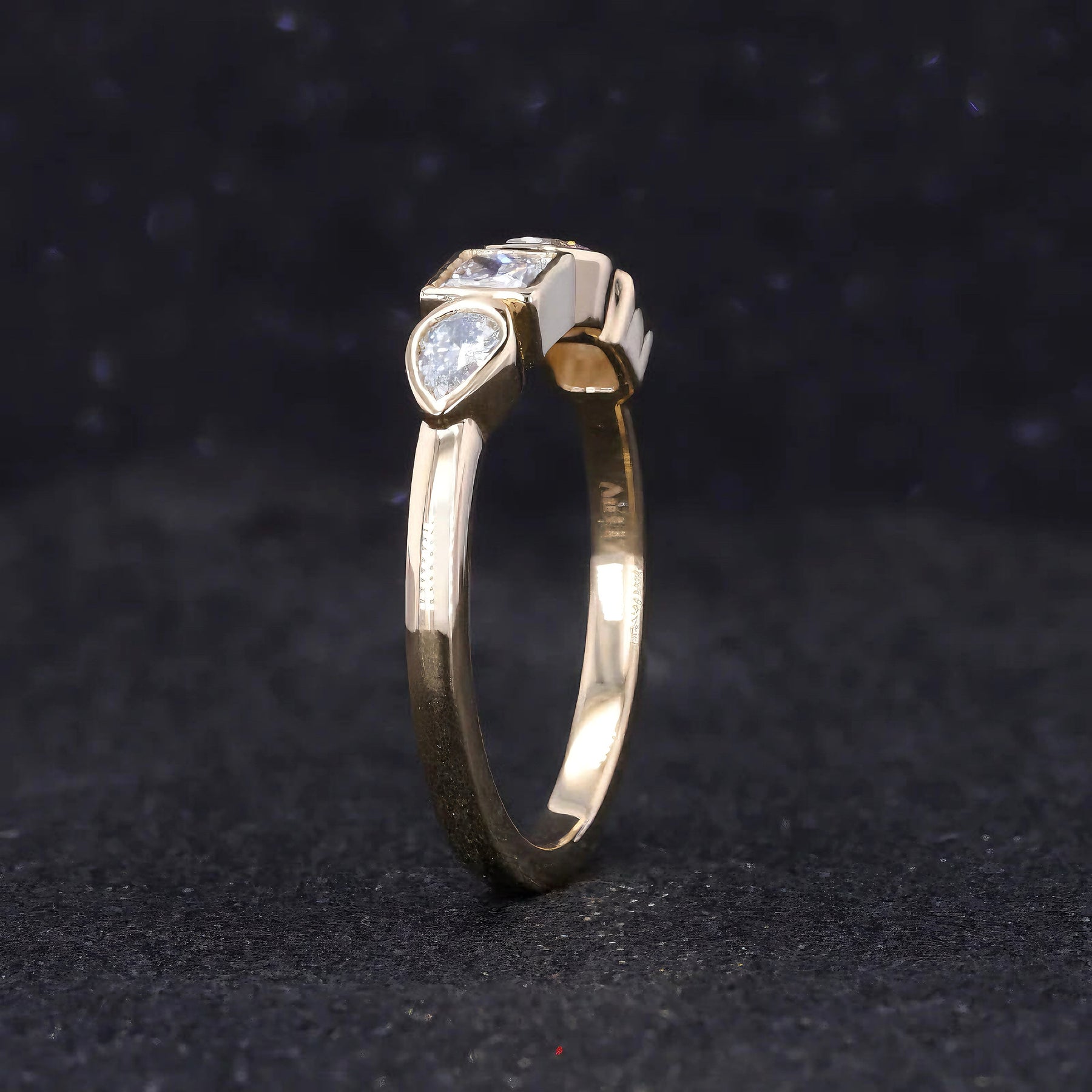 The Four Stone Moissanite Ring in 10K Solid Yellow Gold is a truly unique and eye-catching piece. This ring features four distinct moissanite stones, each bezel-set in a secure and stylish setting.
