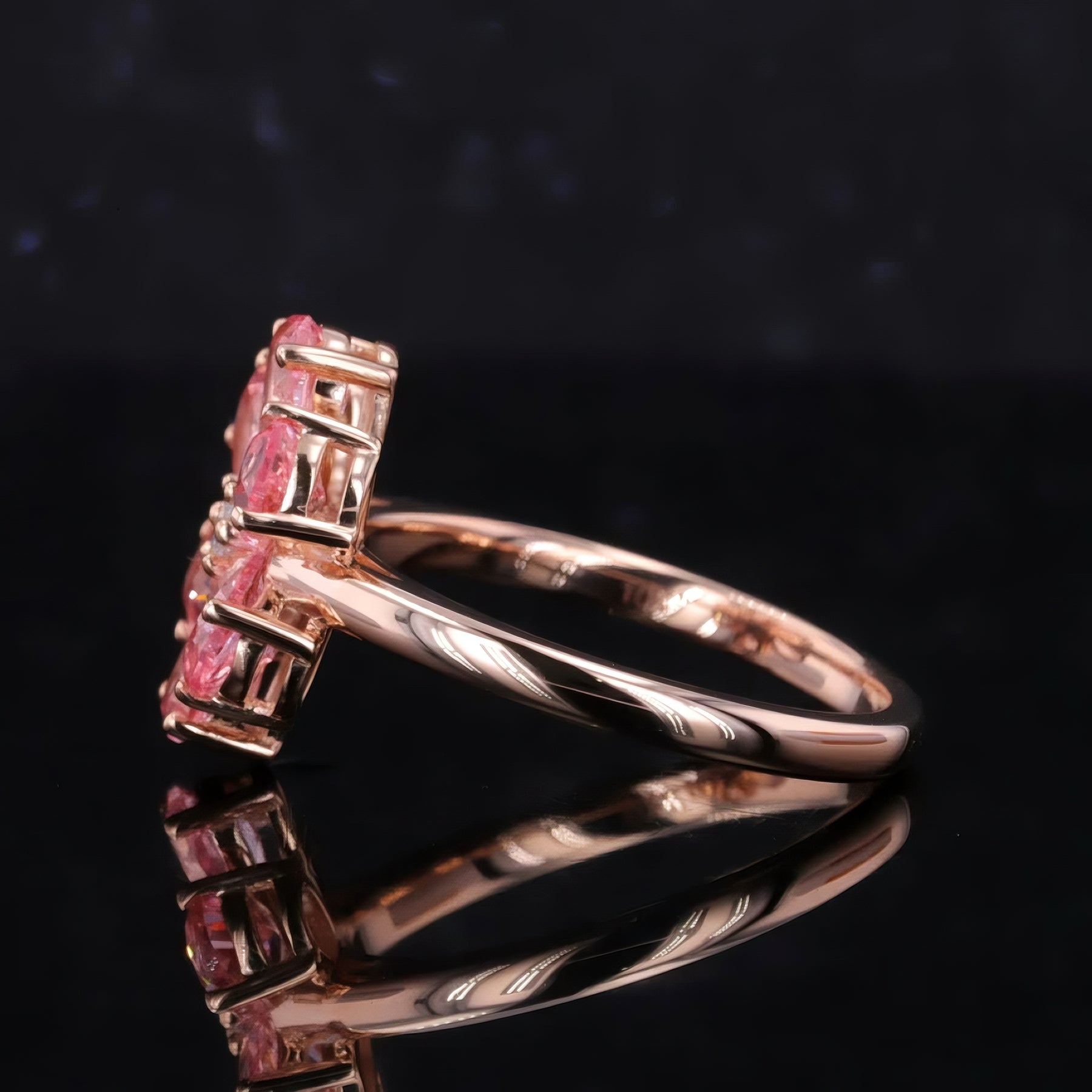 Exquisite Pink Sapphires: A vibrant, eye-catching 6 petal pink sapphires in delicate flower design for added sparkle.
