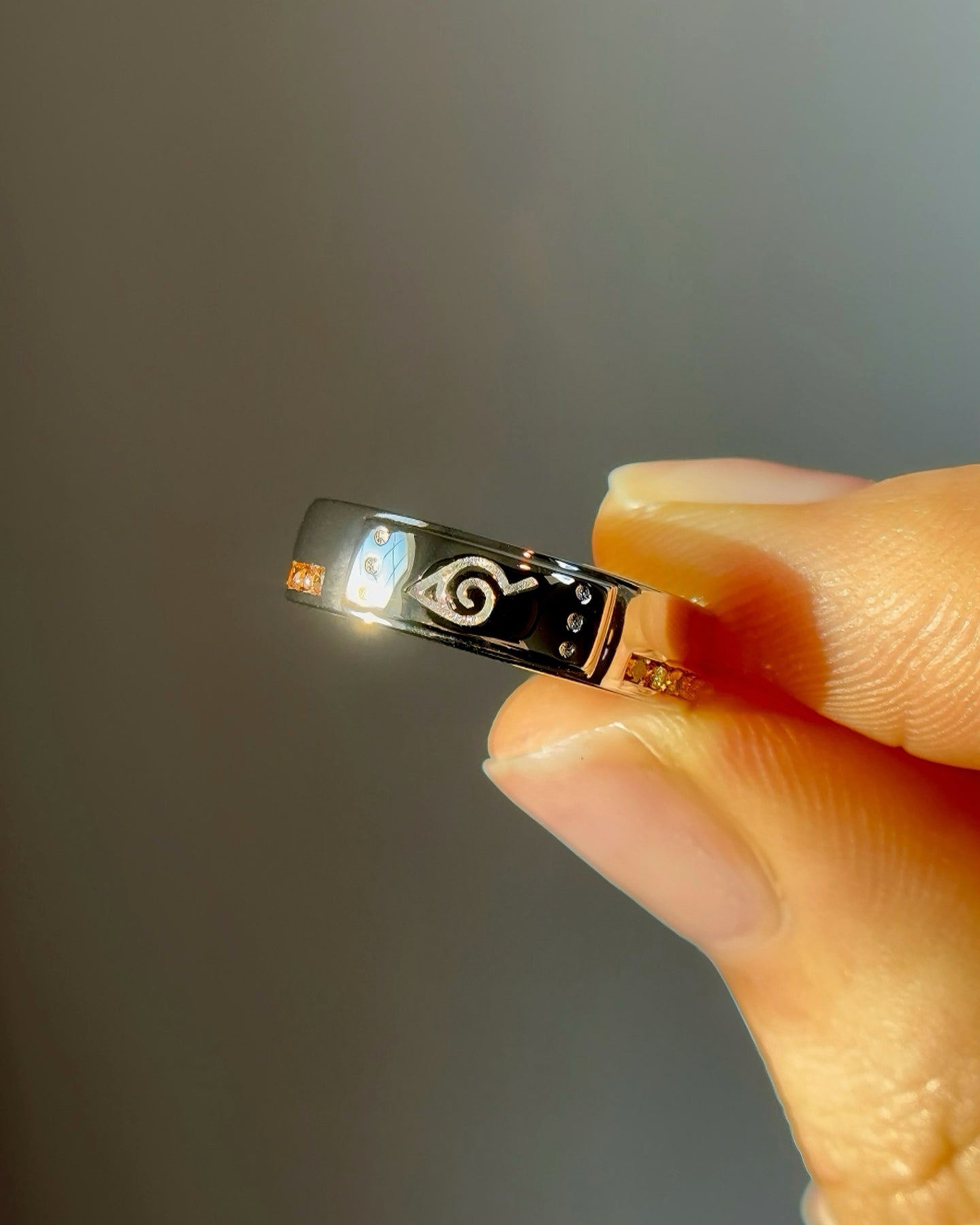 Natural Orange Sapphire Accents – A full circle of twenty 1.5mm natural orange sapphires, glowing with quiet intensity