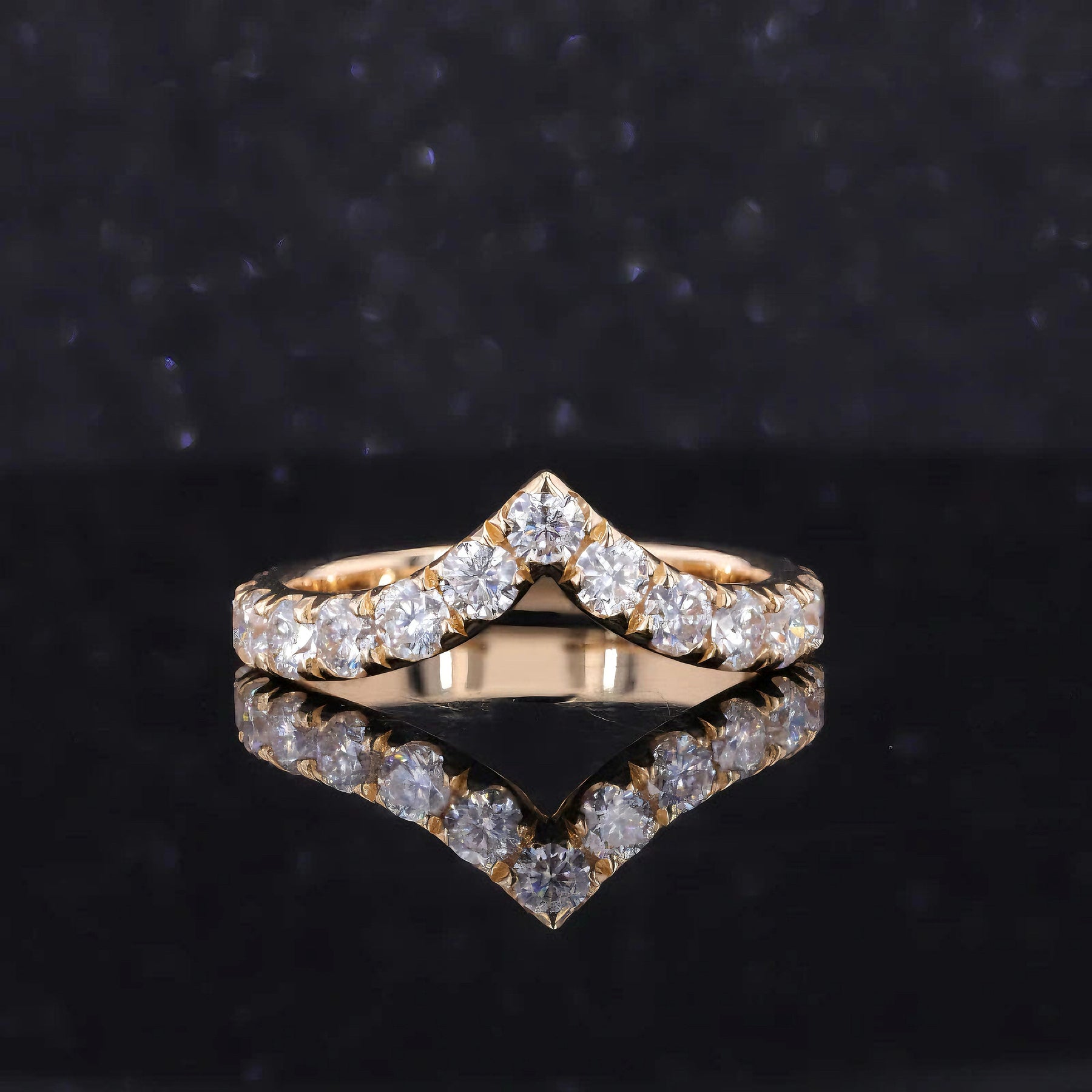 Chevron Design – Elegant V-shape that stacks beautifully with solitaires or enhances lower-set rings.